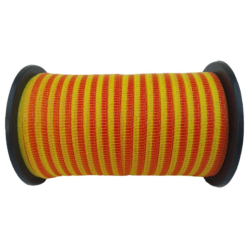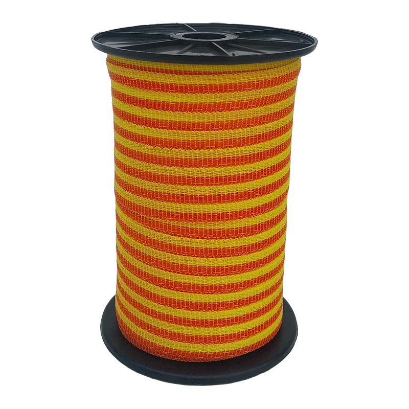 Balení 4+1 ZDARMA - Ohradníková páska Economy line M+S 10 mm/200 m žluto-oranžová odpor 11 Ohm/m - levná vodivá PE páska na elektrický ohradník s 3x 0,15 mm nerezovým ocelovým vodičem. Měrný odpor elektrické ohradníkové pásky 11 Ohm/m. Levná elektrická páska. Vodivá páska pro el. ohradník je určena pro krátké a dočasné ohrady.