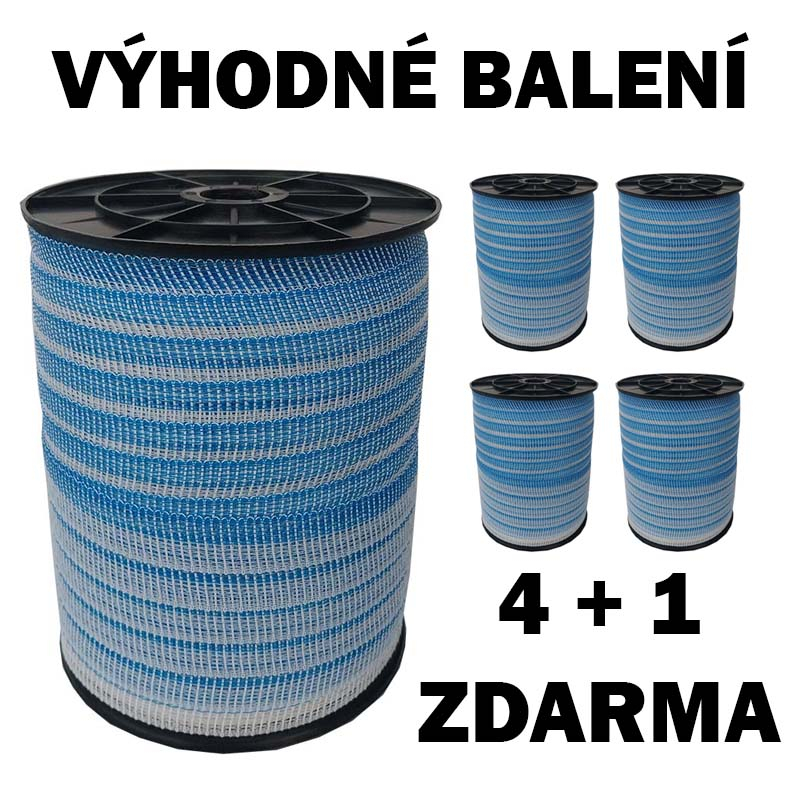 Balení 4+1 ZDARMA - Ohradníková páska Standard line M+S 20 mm/200 m modro-bílá, 9 Ohm/m
