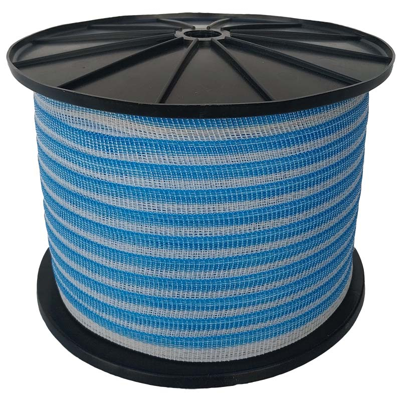 Balení 4+1 ZDARMA - Modro-bílá ohradníková páska Standard line M+S 20 mm/500 m odpor 9 Ohm/m - levná vodivá PE páska na elektrický ohradník s 4x 0,15 mm nerezovým ocelovým vodičem. Měrný odpor elektrické ohradníkové pásky 9 Ohm/m. Vodivá páska pro el. ohradník je určena pro krátké a dočasné ohrady, ale i pro ohrady střední velikost.