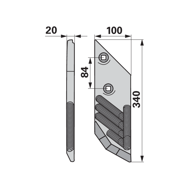 Dláto s karbidem a návarem pravé 340 x 100 x 20mm na pluh Lemken 3364150, 3364050 AgriCarb