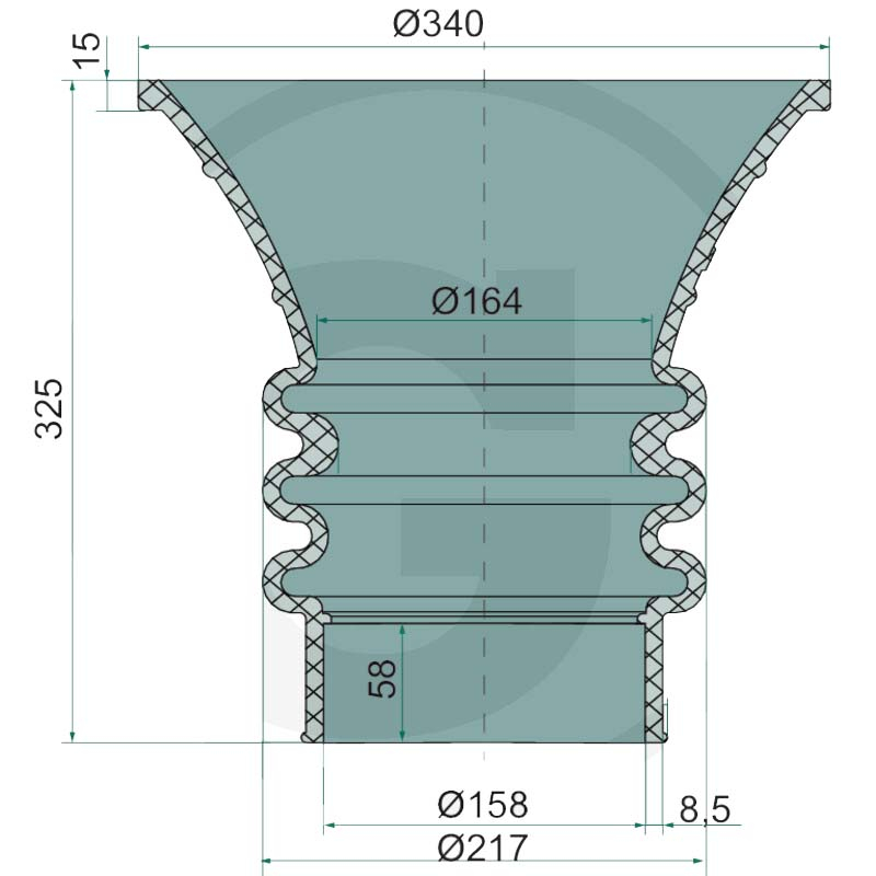 Dokovací trychtýř 6" Premium gumový elastický s měchem pro fekální vozy, přípoj 158/150