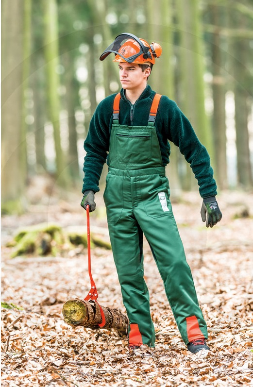 Dřevorubecké laclové kalhoty s ochranou proti proříznutí forma C velikost 48 - třída ochrany proti proříznutí 1, dřevorubecké montérky DPLF testovány EN 381, pružný klín v rozkroku, dodatečná guma v pase, speciální zpracování lemů nohavic, vystouplý pás na ochranu ledvin, nastavitelné elastické kšandy, nastavení šířky pasu, dvě našité postranní kapsy, jedna našitá zadní kapsa s klopu a suchým zipem, jedna kapsa na metr, prsní kapsa se zipem, barva zelená.