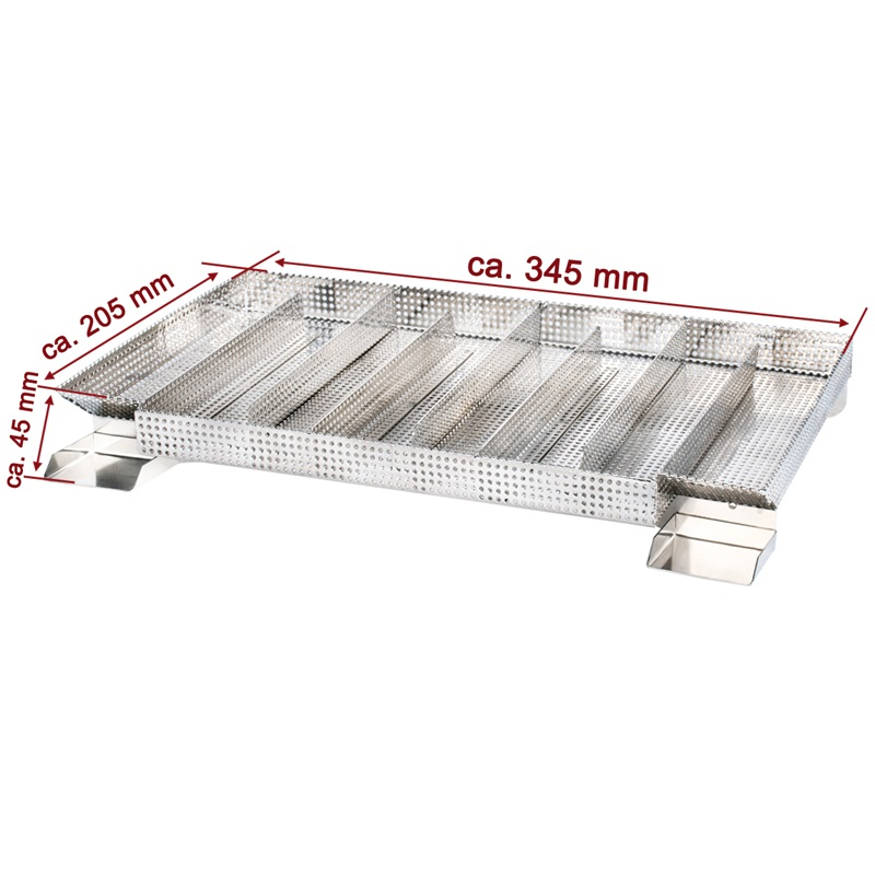 Generátor studeného kouře do udírny, grilu Beeketal Duo XXL 205 x 345 x 45 mm - vhodné pro studené uzení. Generátor kouře velikosti Duo XXL je tvořen z 8 komor na piliny a lze zapálit ze 2 protilehlých konců. Piliny doutnají rovnoměrně a dají se snadno doplnit. Vyrobeno z vysoce kvalitní nerezové oceli V4A.