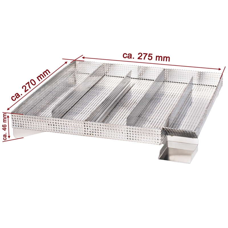 Generátor studeného kouře do udírny, grilu Beeketal XXXL 270 x 275 x 46 mm - vhodné pro studené uzení. Generátor kouře velikosti XXXL je tvořen z 5 komor na piliny. Piliny doutnají rovnoměrně a dají se snadno doplnit. Vyrobeno z vysoce kvalitní nerezové oceli V4A.