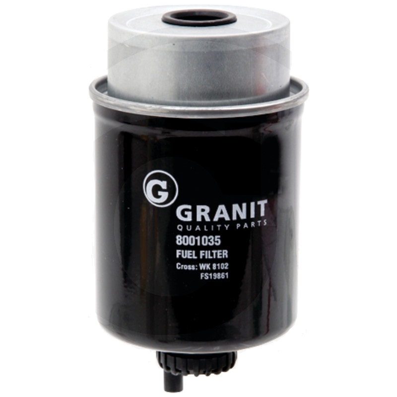 Granit 8001035 palivový filtr pro Bobcat, Cesab, John Deere, Perkins, Renault - referenční číslo MANN WK8102, FLEETGUARD FF19861, John Deere RE62419, RE62418, RE64449, RE64450, RE52987, RE53400, HIFI SN 70110, Donaldson P551424.