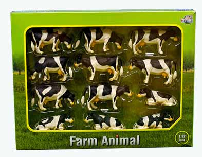 Kids Globe - krávy černobílé 12 ks v různých polohách v měřítku 1 : 32. Dětská hračka na hraní pro děti.