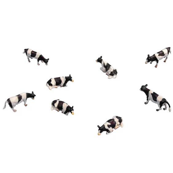 Kids Globe - krávy černobílé 8 ks v různých polohách v měřítku 1 : 87