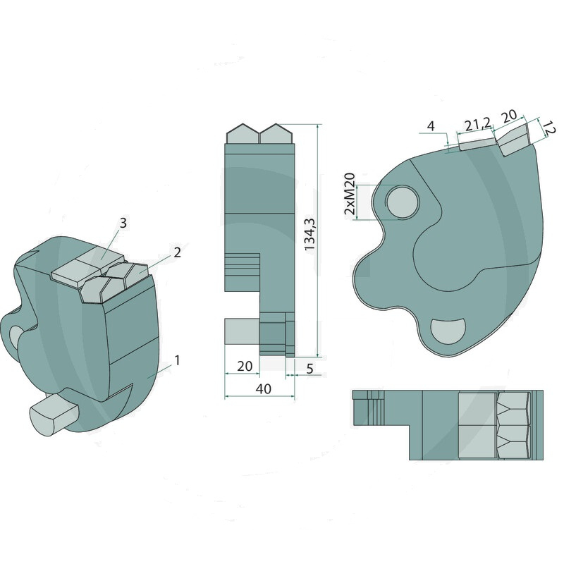 Nástrojové kladivo pravé GRANIT ENDURANCE CARBIDE pro lesní mulčovače a drtiče kamene Serrat MF-3, F3, F4, F5, FX, FX3, FX5, FX6, FX8, FX+, Farmland-3, Farmland-4, Farmland-5, Tiller, Tiller+, Tiller+700, Tiller-3, Totem-4 - výška 134 mm, kalené opotřebitelné díly pro maximální životnost s karbidovými ploškami - referenční číslo CNJ-2118, CNJ-4566.