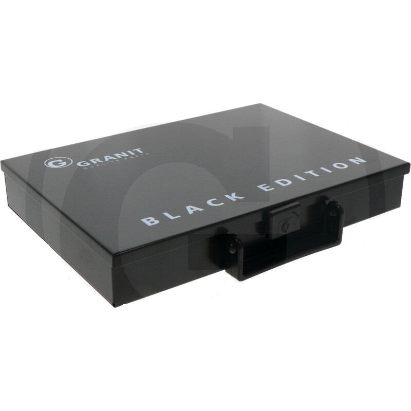 Kovový organizér kufřík na šrouby, šroubky 12 přihrádek Granit BLACK EDITION 330 x 230 x 50 mm nevybavený - stabilní kovový kufr GRANIT BLACK EDITION s práškovým nástřikem,