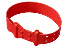 Krční plastová páska pro ovce a kozy červená - rozměry 4x55 cm, s velmi pevným uzamčením, plastový krční řemen hlavně slouží k označení nebo evidenci zvířat, ale zároveň umožnuje uvázání ovcí nebo koz.