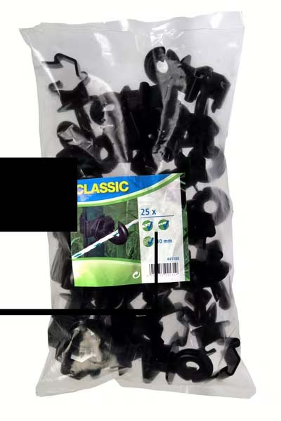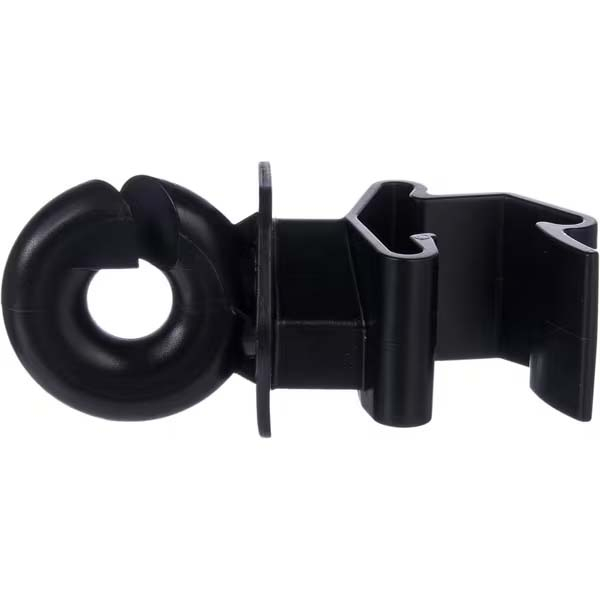 Kruhový izolátor vhodný pro T-sloupek černý, balení 25 ks. Pro vodivé provázky, dráty, lanka i pásky do 10 mm.