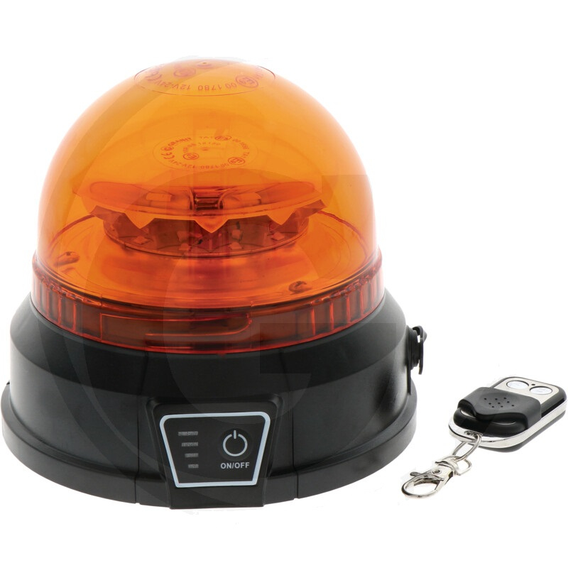 LED AKU maják oranžový mgnetický na traktor, auto výstražný 45 LED 12V/24V průměr 128 mm s dobíjecí baterií - maják se používá na auta, traktory, stroje i zemědělská vozidla. Výška 140 mm, průměr 128 mm..
