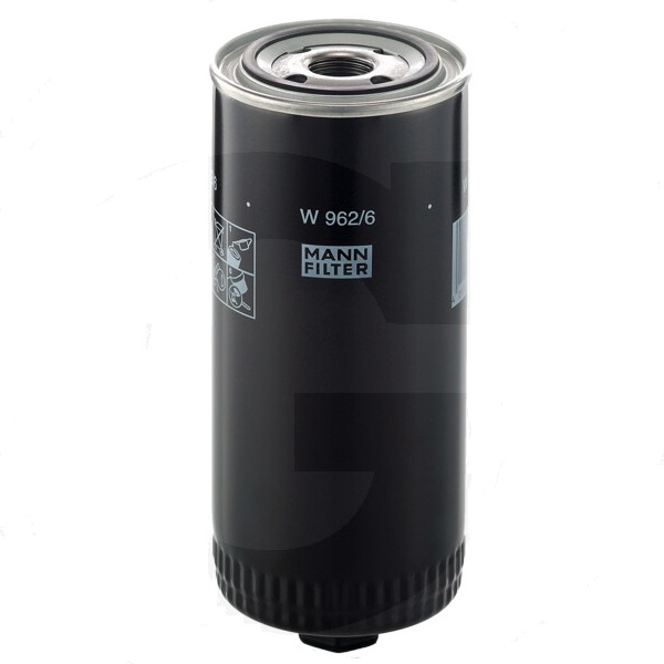 MANN FILTER W962/6 filtr motorového oleje na Case IH, Claas, Clayson, Deutz-Fahr, Eicher, Fendt, John Deere, Kramer, Linde, Mengele, Merlo, Mitsubishi, New Holland, Renault, Wacker Neuson - olejový filtr.