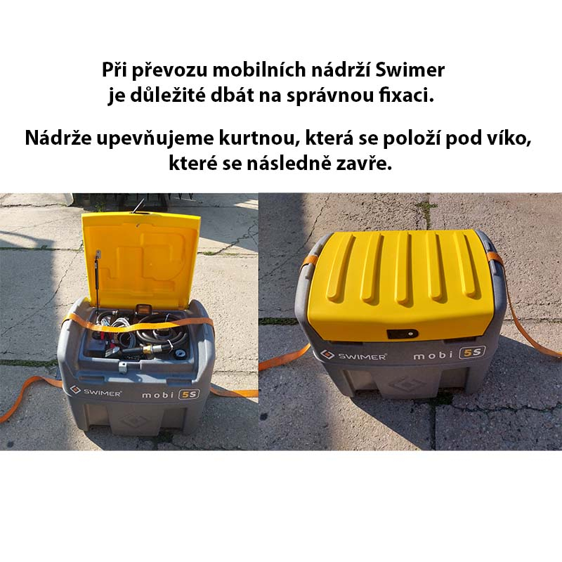 Mobilní nádrž na AdBlue vhodná k převozu SWIMER mobi 5S Blue 200 l verze BASIC - mobilní nádrž na AdBlue je přizpůsobena pro manipulaci pomocí vysokozdvižného vozíku nebo přepravními pásy. Využití jako malá přenosná čerpací stanice pro tankování AdBlue do vozidel a strojů. Vhodná pro doplňování AdBlue v průběhu práce na polích, stavbách atd.