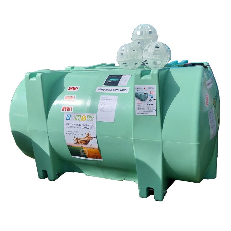 Mobilní nádrž na kapalná hnojiva vhodná k převozu DAM SWIMER Mobilis Agro 9000 l - mobilní jednoplášťové nádrže na kapalná hnojiva DAM jsou vyrobené z polyethylenu vstřikováním do speciálních forem, které zajišťují pevné odlitky bez svárů s ochranou proti UV záření. Nádrž lze snadno připevnit na korbu auta a je tak ideální pro transport kapalných dusíkatých hnojiv na bázi dusičnanu amonného DAM. Nádrž je vybavena 2" výpustí s kulovým ventilem a konektorem typu STORZ, ukazatelem hladiny naplnění a inspekčním otvorem s odvětráváním. Nádrže lze stohovat, pokud jsou prázdné.