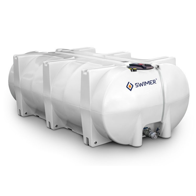 Mobilní nádrž na pitnou vodu vhodná k převozu vody SWIMER Mobilis Aqua 9000 l - mobilní jednoplášťové nádrže na pitnou vodu jsou vyrobené z polyethylenu vstřikováním do speciálních forem, které zajišťují pevné odlitky bez svárů s ochranou proti UV záření. Nádrž lze snadno připevnit na korbu auta a je tak ideální pro transport pitné vody na festivaly, hromadné akce apod. Nádrže mají hygienický atest. Nádrž je vybavena 2" výpustí s kulovým ventilem a konektorem typu STORZ, ukazatelem hladiny naplnění a inspekčním otvorem s odvětráváním. Nádrže lze stohovat, pokud jsou prázdné.