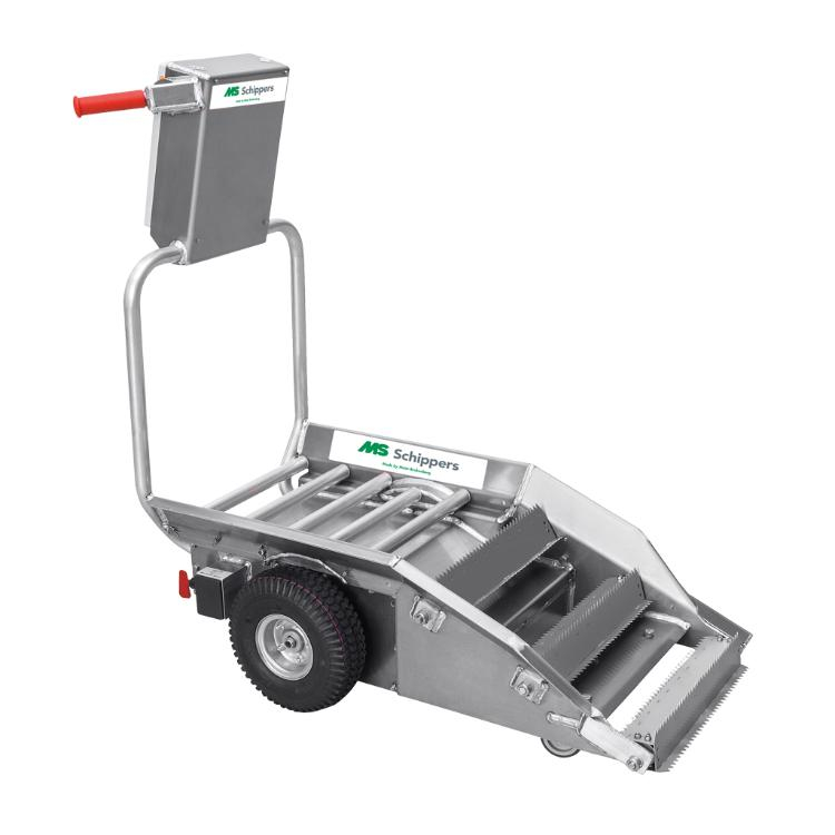 Díky silnému tříhřídelovému válečkovému pohonu a elektrickému pojezdu zvládne obsluhu jediný pracovník – bez fyzické námahy, bez rizika poranění zad a v plné hygieně. Vozík je vybaven výkonným 24V DC motorem, bezdušovými pneumatikami a robustním hliníkovým šasi odolným proti korozi.