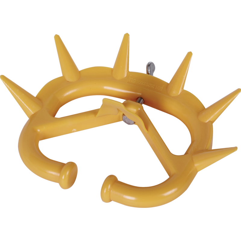 Mulcová zábrana KAMER červená pro telata a mladý skot velikost M 5 - 24 měsíců- velikost elastického kruhu mulcové zábrany se jednoduše nastavuje a díky šroubu se kruh snadno připevní do nosní chrupavky zvířete. Ztráta ochrany proti sání je téměř nemožná.
