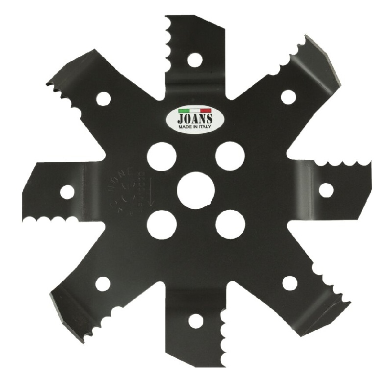 Mulčovací nůž na křovinořez s ozubeným ostřím 8 zubů šířka řezu 255 mm otvor 25 mm tloušťka 3 mm na křoviny, ostružiní JOANS - mulčovací nůž s ozubeným ostřím je ideální volbou pro náročné práce, jako je sečení houževnatých křovin, náletových dřevin nebo ostružiní. Díky pevné konstrukci z kvalitní oceli si snadno poradí i s hustším porostem a zajistí čistý a efektivní řez. Ozubené ostří umožňuje současně sekat i drobně drtit rostlinný materiál, čímž urychluje jeho rozklad a zanechává prostor upravený bez potřeby další údržby.