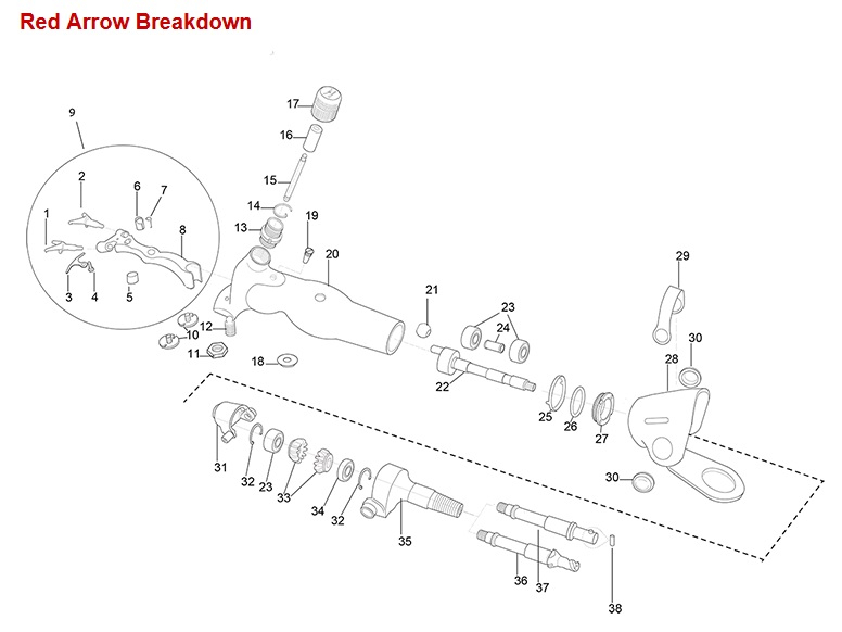 Náhradní šroub stříhací hlavice pro stříhací hlavice Horner Red Arrow, SureGrip - náhradní díl ke strojku na stříhání ovcí Horner Red Arrow a SureGrip. Ve výkresu na pozici 12.
