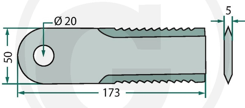 Nůž do drtiče slámy Granit 2x ozubený 50 x 5 x 173 pro sklízecí mlátičky KPAB, New Holland, John Deere 25 ks - mlátící nůž pohyblivý, tloušťka 5 mm - referenční číslo 87318316.