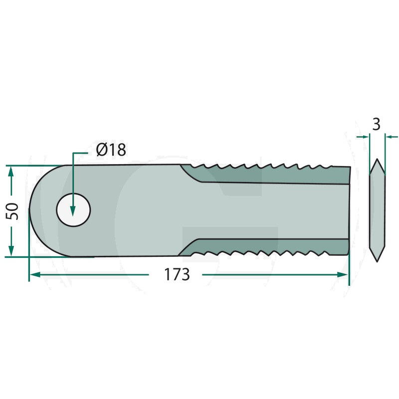 Nůž do drtiče slámy 2x ozubený Granit 50 x 3 x 173 na kombajn Biso 25 ks - mlátící nůž pohyblivý, balení 25 ks, tloušťka 3 mm.