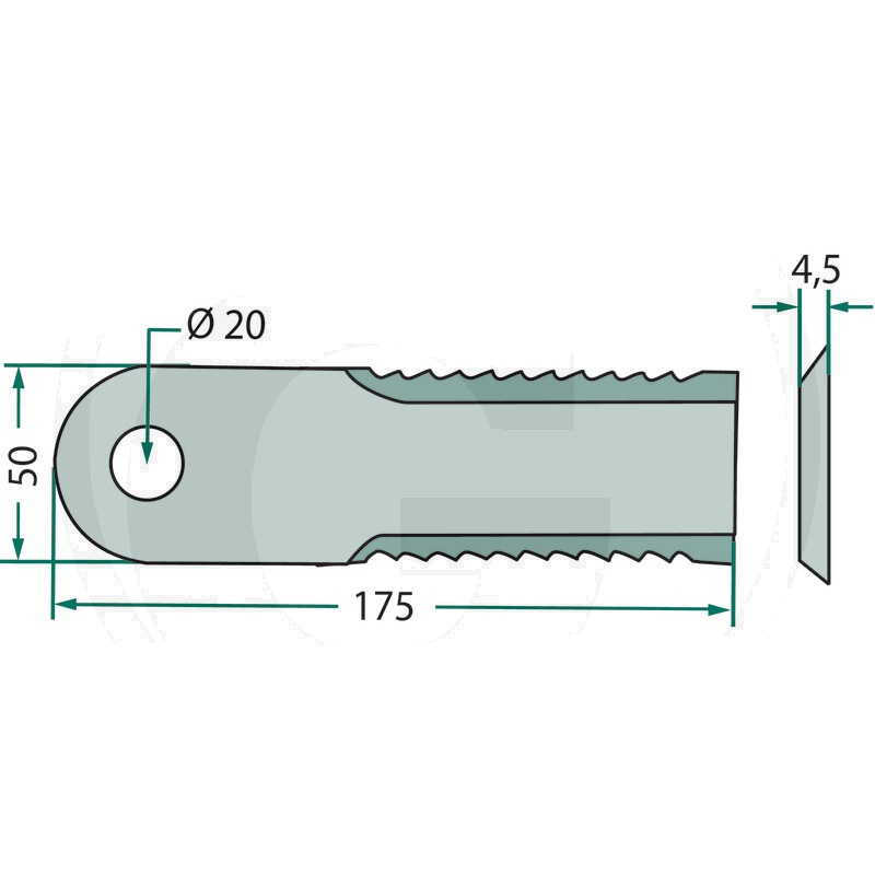 Nůž do drtiče slámy 2x ozubený Granit 50 x 4,5 x 175 na kombajn Dronningnorg, MF 25 ks