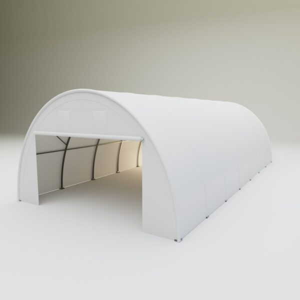 Oblouková hala na seno, zemědělskou techniku 6,1 x 12,80 x 3,66 m + plachta 750 g/m2 - plachtová hala je tvořena kvalitní ocelovou konstrukcí z pozinku, která je krytá zelenou nebo bílou plachtou (barvu prosím specifikujte v objednávce). Vstup je možný z přední i zadní strany - otvírání pomocí zipu. Plachta přístřešku je z PVC, který je nepromokavý, UV odolný a má životnost více než 20 let.