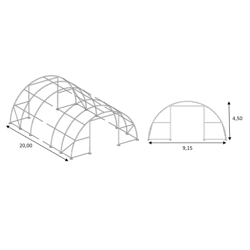 Oblouková hala na seno, zemědělskou techniku 9,15 x 20 x 4,5 m + plachta 900 g/m2