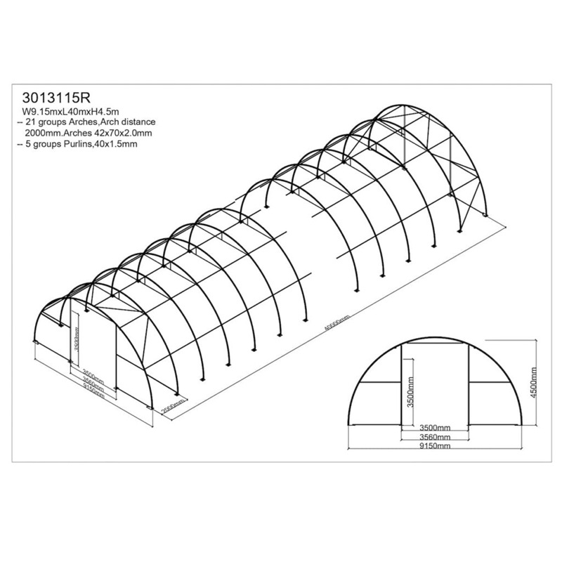 Oblouková hala na seno, zemědělskou techniku 9,15 x 40 x 4,5 m + plachta 900 g/m2