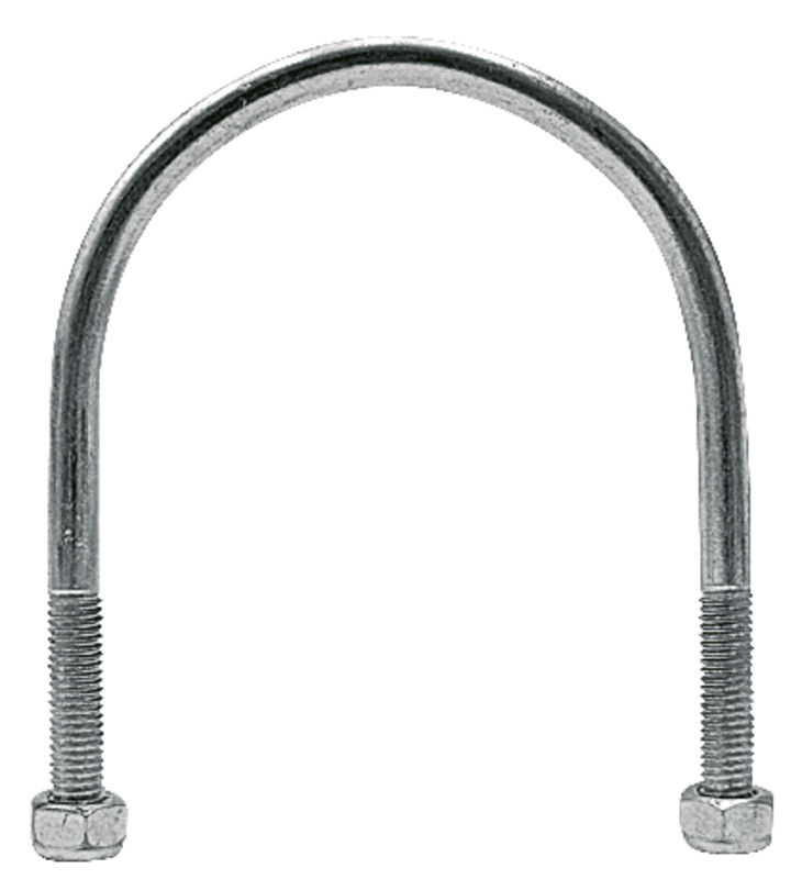 Obloukový šroub s maticemi zinkovaný pro trubku a potrubí o průměru 1" - d1=35 mm, d2=M 8, H1=80 mm, H2=25 mm, hmotnost 64 g.