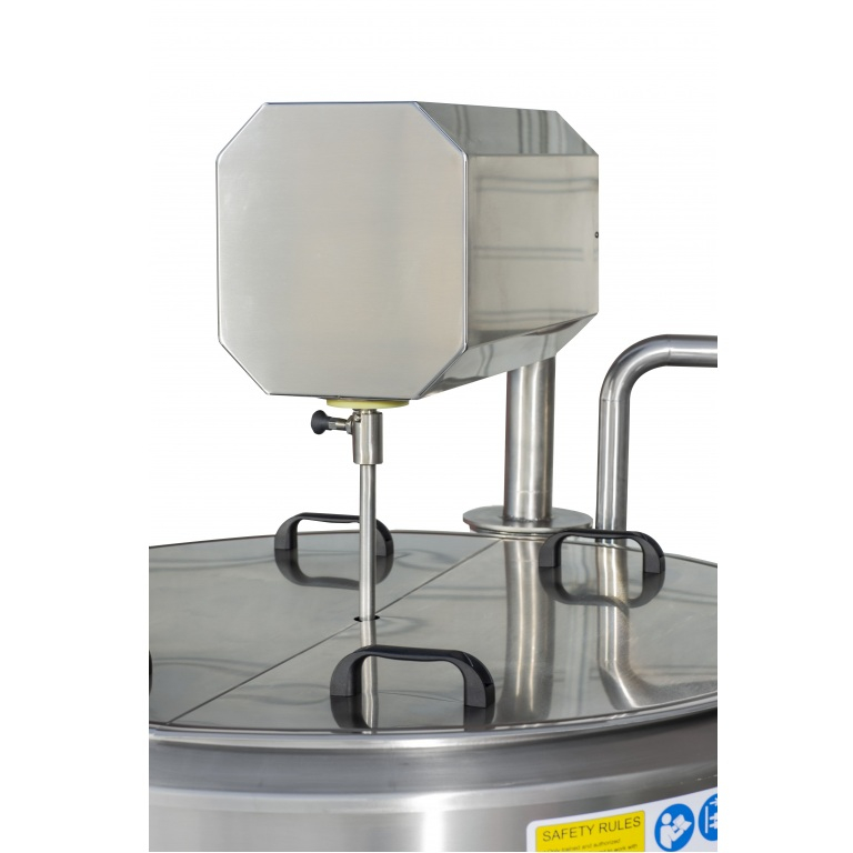 Upozornění: Pasterizátor na mléko FJ 300 je k dispozici ve 2 variantách, z nichž 1 obsahuje klasické míchadlo a druhá sýrařskou harfu (viz. obrázky). Při objednávce prosím specifikujte, která z variant Vám vyhovuje nejvíce.