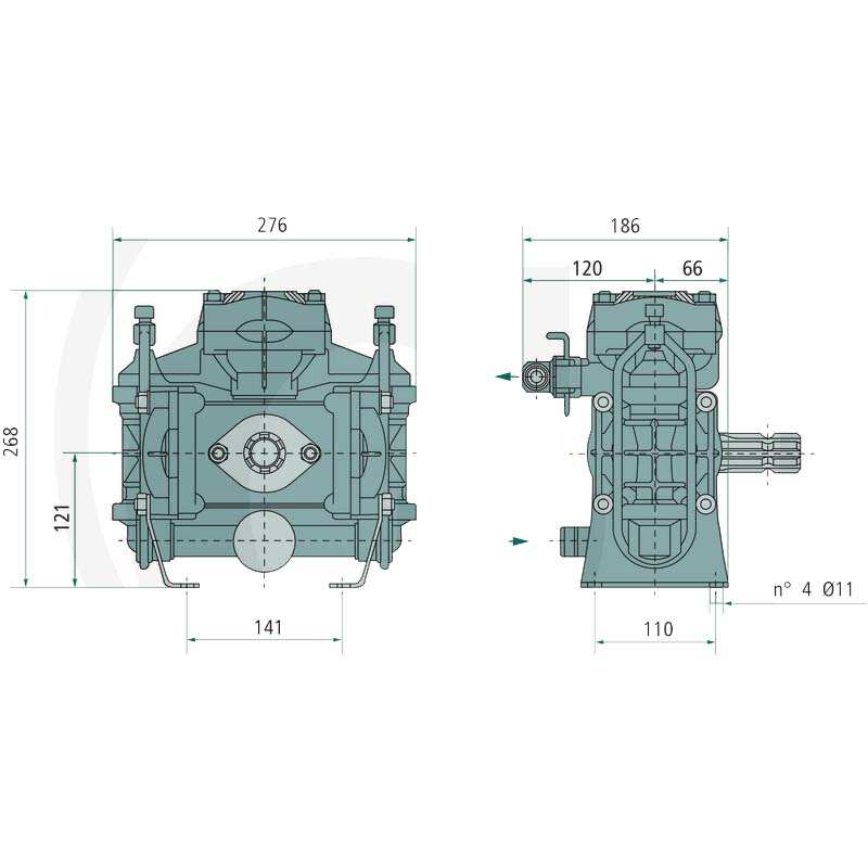 Pístomembránové čerpadlo pro postřikovače Comet BP 60 K NBR - nízkotlaké pístové membránové čerpadlo určené především pro zemědělské postřikovače a aplikace jako je postřik plevelů, hnojiv nebo péče o trávníky. Čerpadlo má dva membránové prvky z materiálu NBR (Buna-N) a je navrženo tak, aby spolehlivě pracovalo při pracovním tlaku až 20 bar (290 psi) a při otáčkách do 550 rpm, což odpovídá běžným požadavkům polních a zahradních postřiků. Konstrukce využívá plastem potažené hliníkové tělo a součásti odolné vůči chemikáliím, které přicházejí do kontaktu s čerpanou kapalinou, a je vybavena akumulátorem tlaku pro hladší činnost.