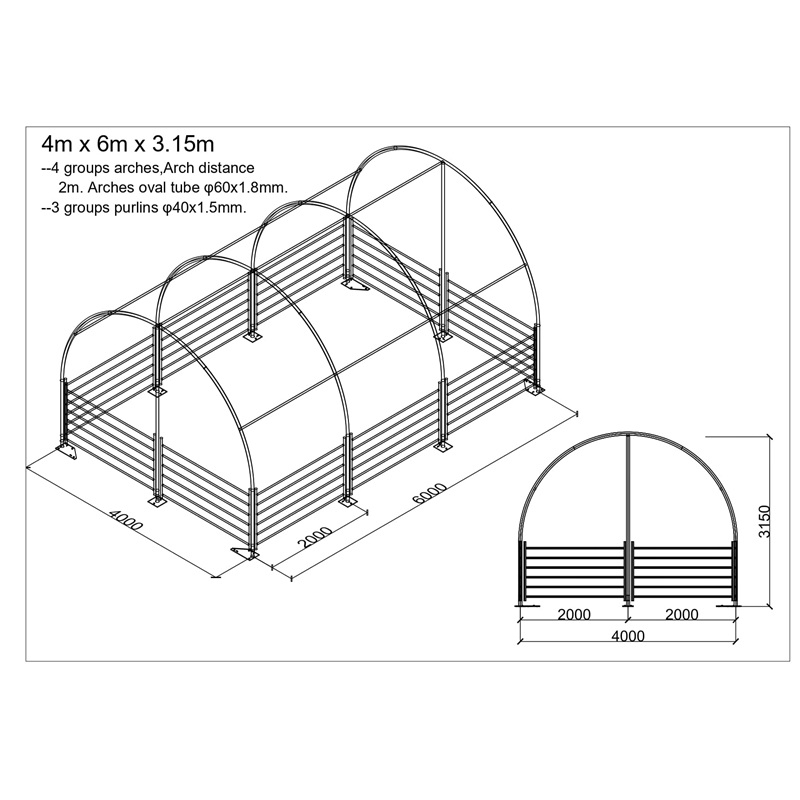 Použité ocelové trubky jsou dimenzovány dle konkrétního rozměru haly. Průměr trubek je přibližně 70 mm × 42 mm a tloušťka stěny činí cca 2 mm (dle typu a velikosti haly).