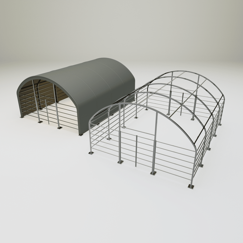 Plachtový přístřešek pro koně, ovce, skot, zvířata 6 x 8 x 3,7 m + plachta 750 g/m2