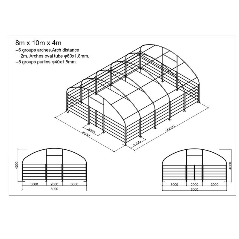Použité ocelové trubky jsou dimenzovány dle konkrétního rozměru haly. Průměr trubek je přibližně 70 mm × 42 mm a tloušťka stěny činí cca 2 mm (dle typu a velikosti haly).