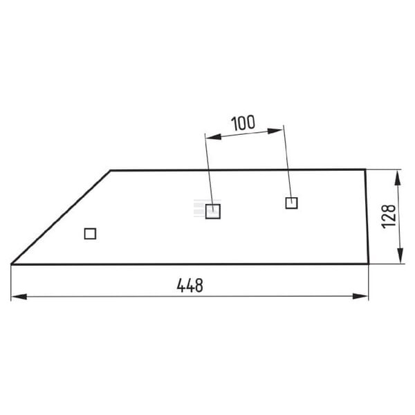 Plaz přední pravý krátký PHX35, Privat na roudnický pluh Ross Roudnice 448 x 128 x 12,5 mm - opotřebitelný náhradní díl roudnického pluhu PHX Ross Roudnice, referenční číslo 4030-019, 532-0-4030-0197, 40300197. Pluhové šrouby s maticemi (nejsou součástí dodávky): 3 ks 1801235810.