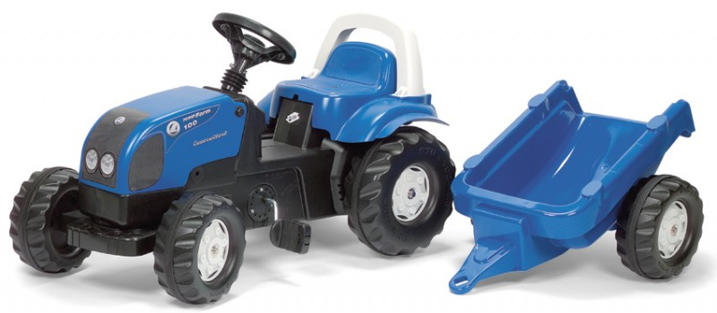 Rolly Toys - šlapací traktor Landini Powerfarm 100 s přívěsem modelová řada Rolly Kid - rozměry 1340 x 470 x 520 mm. Plastová kola.