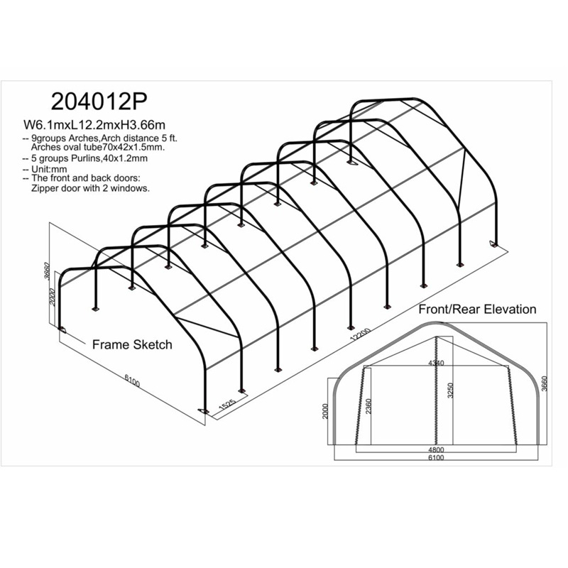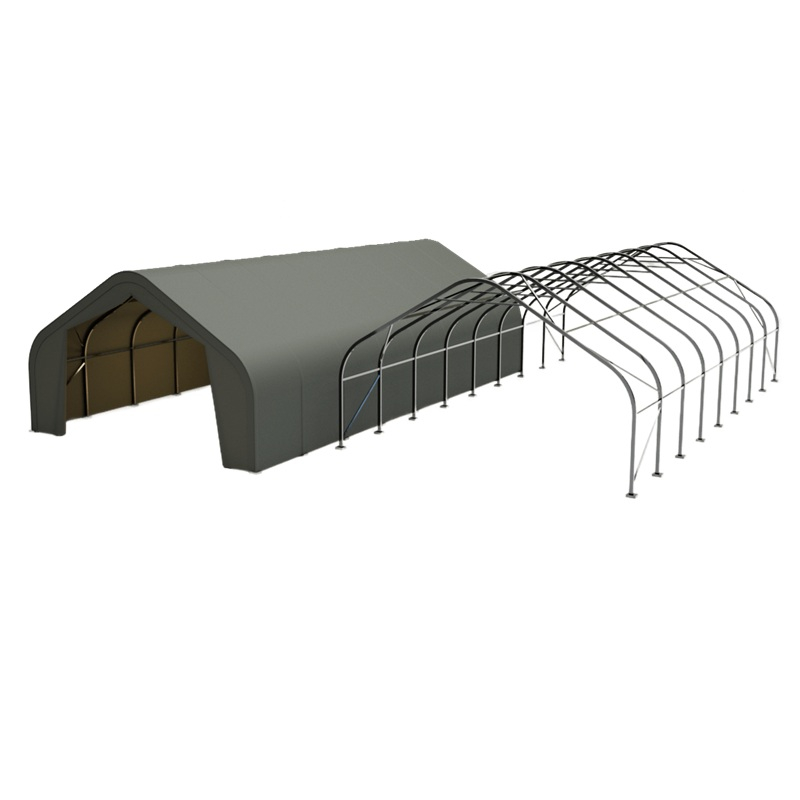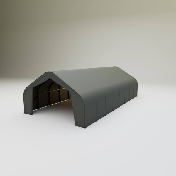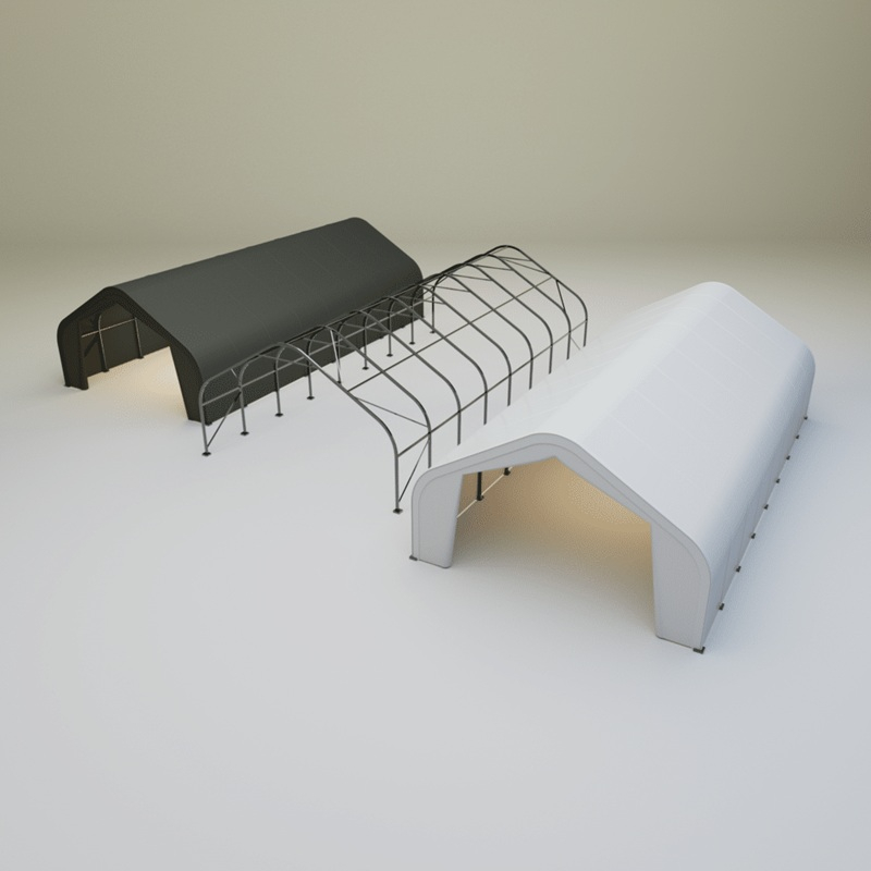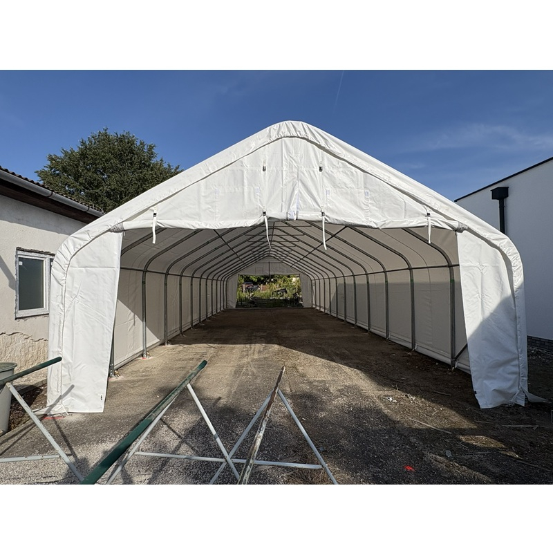 Skladová, stanová hala jednoduchá konstrukce 6,1 x 13,72 x 3,66 m + plachta 650 g/m2 - stanová (skladová) hala, známá také jako sedlová hala, disponuje robustní pozinkovanou ocelovou konstrukcí, která je kryta vysoce odolnou zelenou nebo bílou PVC plachtou (barvu prosím specifikujte v objednávce). Vstup je možný z přední i zadní strany - otvírání pomocí zipu. Plachta přístřešku je z PVC, který je nepromokavý, UV odolný a má životnost více než 20 let.