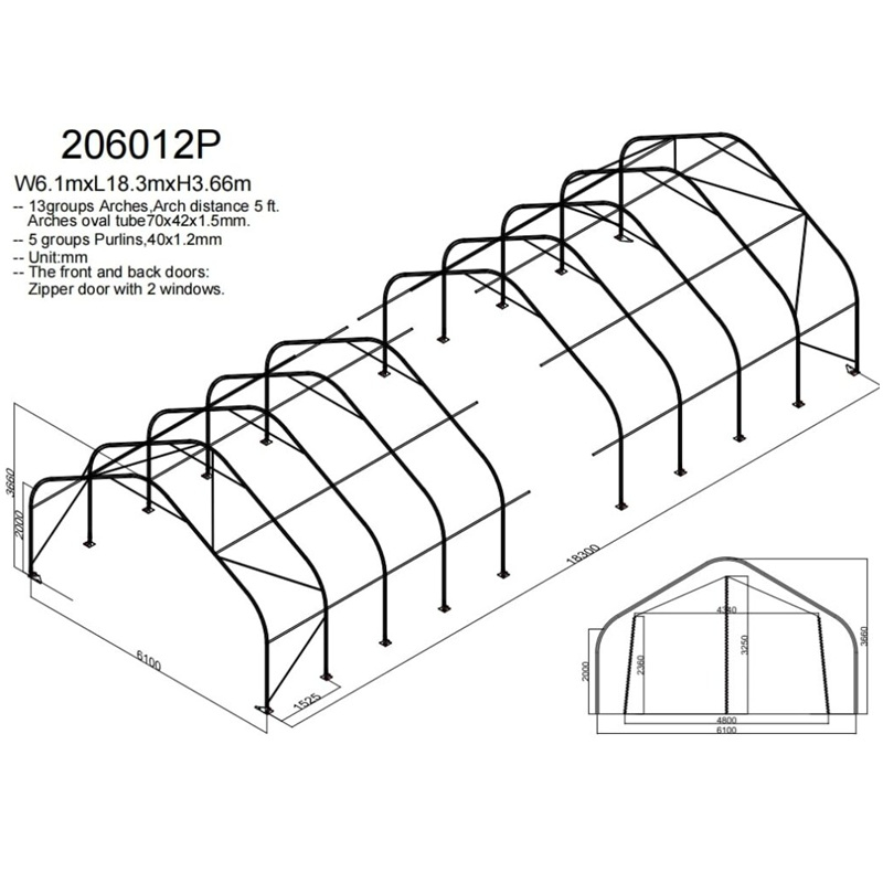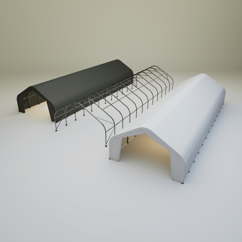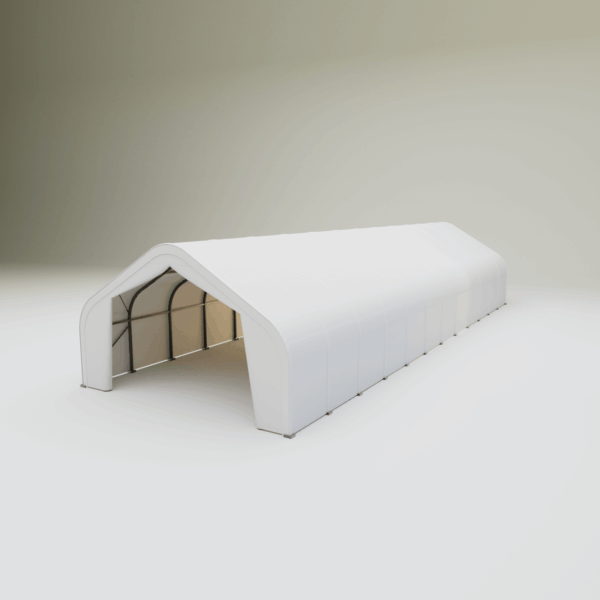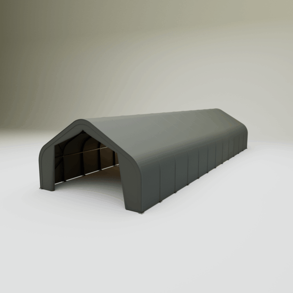 Skladová, stanová hala jednoduchá konstrukce 6,1 x 18,3 x 3,66 m + plachta 650 g/m2 - stanová (skladová) hala, známá také jako sedlová hala, disponuje robustní pozinkovanou ocelovou konstrukcí, která je kryta vysoce odolnou zelenou nebo bílou PVC plachtou (barvu prosím specifikujte v objednávce). Vstup je možný z přední i zadní strany - otvírání pomocí zipu. Plachta přístřešku je z PVC, který je nepromokavý, UV odolný a má životnost více než 20 let.