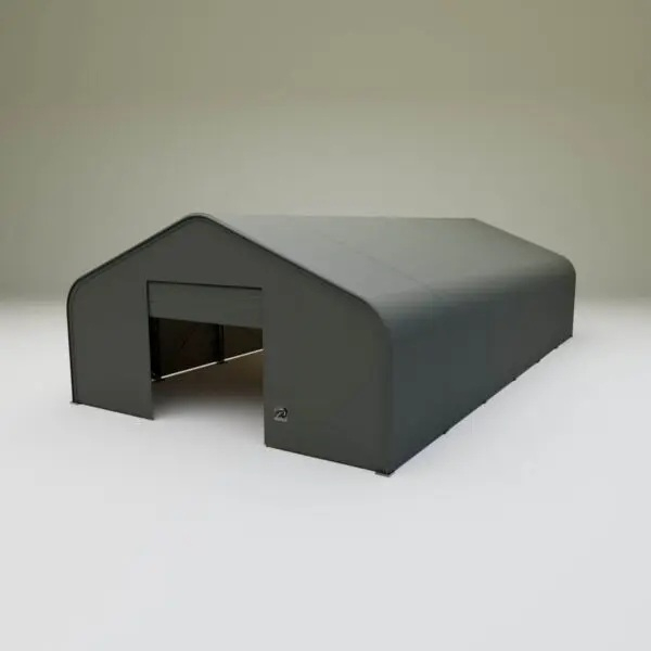 Skladová, stanová hala příhradová konstrukce 10 x 18,3 x 6,1 m + plachta 900 g/m2 - stanová (skladová) hala, známá také jako sedlová hala, disponuje dvojitou pozinkovanou ocelovou konstrukcí, která je kryta vysoce odolnou zelenou nebo bílou PVC plachtou (barvu prosím specifikujte v objednávce). Vstup je možný z přední i zadní strany - otvírání pomocí ručního navijáku (elektrický naviják je za příplatek). Plachta přístřešku je z PVC, který je nepromokavý, UV odolný a má životnost více než 20 let.