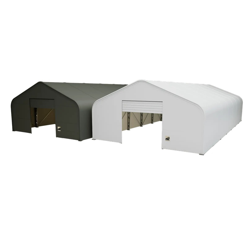Skladová, stanová hala příhradová konstrukce 10 x 21,35 x 6,1 m + plachta 900 g/m2 - stanová (skladová) hala, známá také jako sedlová hala, disponuje dvojitou pozinkovanou ocelovou konstrukcí, která je kryta vysoce odolnou zelenou nebo bílou PVC plachtou (barvu prosím specifikujte v objednávce). Vstup je možný z přední i zadní strany - otvírání pomocí ručního navijáku (elektrický naviják je za příplatek). Plachta přístřešku je z PVC, který je nepromokavý, UV odolný a má životnost více než 20 let.