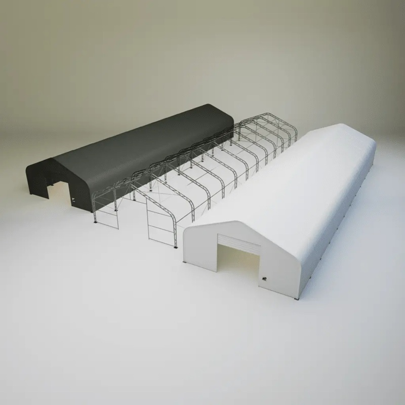 Skladová, stanová hala příhradová konstrukce 10 x 33,55 x 6,1 m + plachta 900 g/m2
