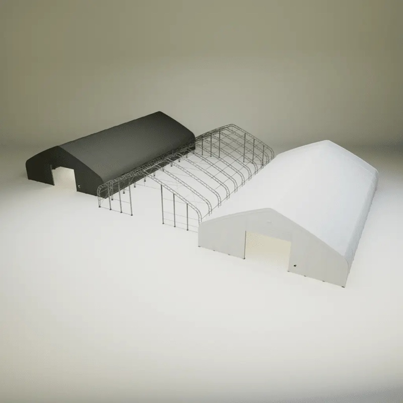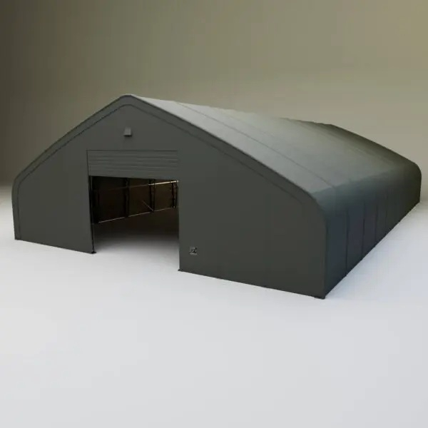 Skladová, stanová hala příhradová konstrukce 18,3 x 46,36 x 7,63 m + plachta 900 g/m2 - stanová (skladová) hala, známá také jako sedlová hala, disponuje dvojitou pozinkovanou ocelovou konstrukcí, která je kryta vysoce odolnou zelenou nebo bílou PVC plachtou (barvu prosím specifikujte v objednávce). Vstup je možný z přední i zadní strany - otvírání pomocí ručního navijáku (elektrický naviják je za příplatek). Plachta přístřešku je z PVC, který je nepromokavý, UV odolný a má životnost více než 20 let.