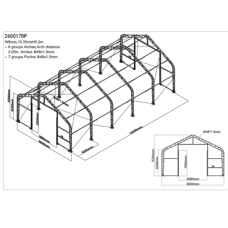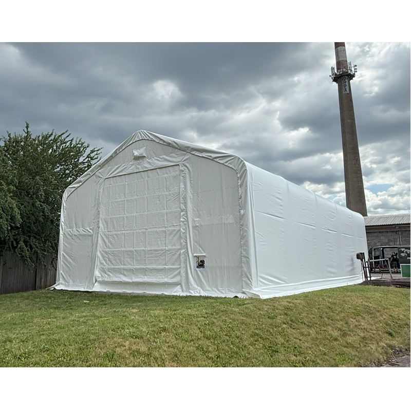 Skladová, stanová hala příhradová konstrukce 8 x 15,25 x 5,2 m + plachta 900 g/m2