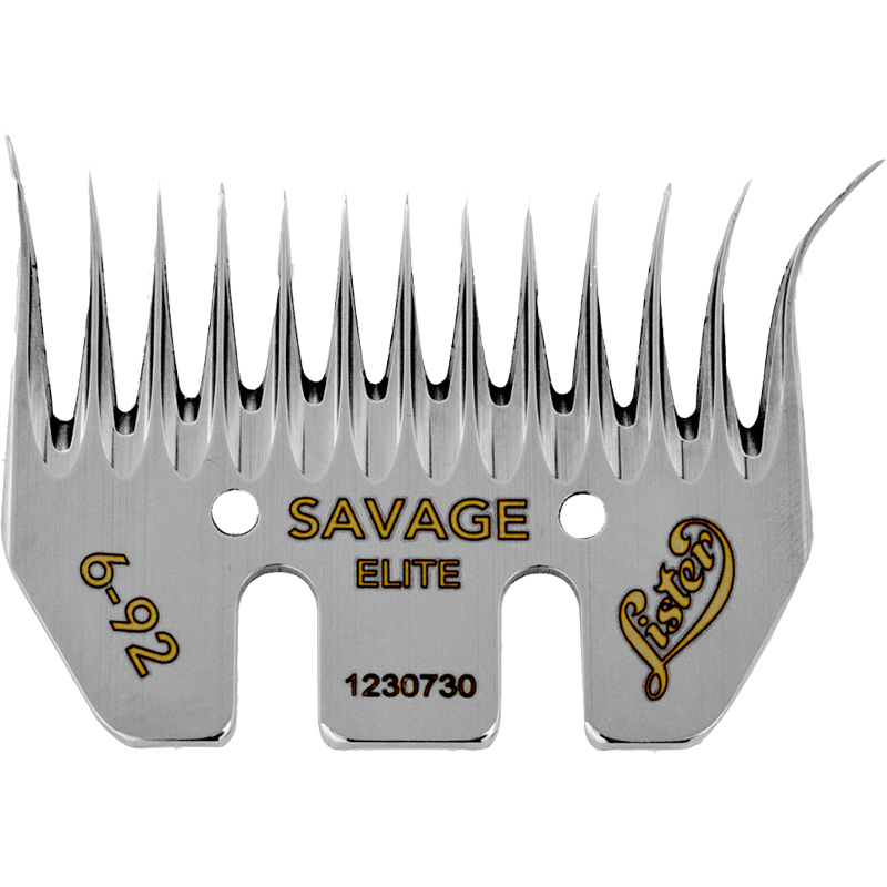 Spodní nůž Lister Savage Elite MB 6/92 mm střední úkos na stříhání ovcí a dobytka - hřeben má štíhlý profil zubů pro zvýšení rychlosti stříhání. Šířka nože je 92 mm, úkos 6 mm. Vhodný na ulepenou ovčí vlnu.