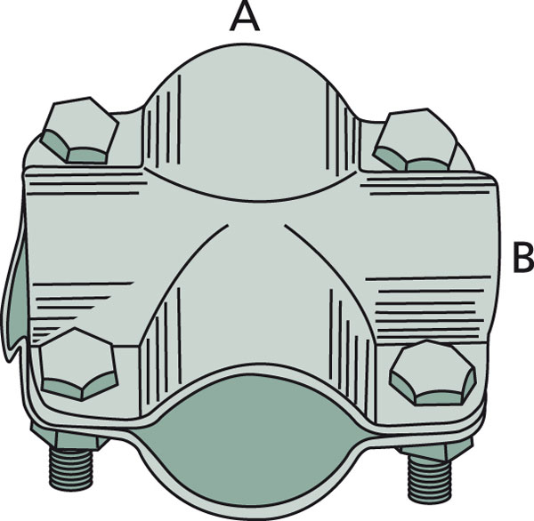 Stájová křížová spona dvojdílná se 4 šrouby průměr A 34 mm (1") B 34 (1") mm - stájová trubková spona, spojka na trubky, svorka trubek.
