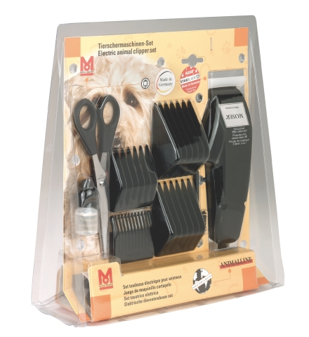 Stříhací strojek pro psy Moser 1400 - sada, levný síťový elektrický strojek na stříhání psů na domácí využití pro psy, kočky, drobné zvířectvo. Osvědčené levné elektrické nůžky se silným kmitavým pohonem. Mašinka na psa má univerzální použití díky nastavitelné délce zastřižení 0,1-3 mm, přesné zastřižení zajistí speciálně broušená hlava z kvalitní oceli, 230 V / 50 Hz / 10 W. Sada obsahuje obsahuje strojek, nůžky, 4 nasazovací výměnné hřebeny s délkou zastřižení 4,5 - 19 mm, čistící kartáček a lahvičku s olejem.