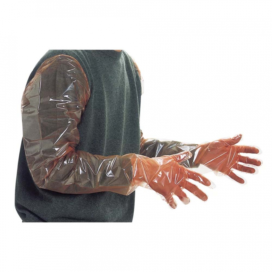 Veterinární vyšetřovací rukavice 92 cm VETORANGE dlouhé 100 ks tloušťka 28,5 mikronů - dlouhé vyšetřovací rukavice na celou délku paže až po rameno s prsty, inseminační rukavice.