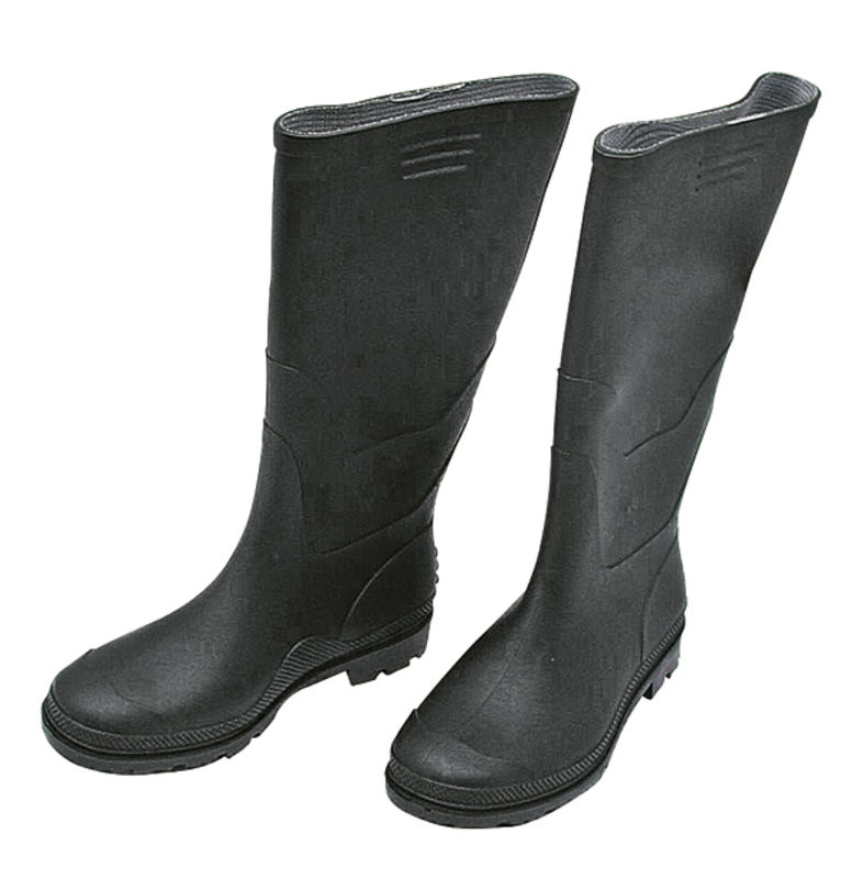 Vysoké gumové pracovní holínky velikost 45 - gumáky, vyrobeno dle normy EN 347 04, vnitřní materiál textilní podšívka, bota i podrážka z PVC, výška holínky cca 38 cm ke kolenu, odolné proti benzínu, oleji a kyselinám, vhodné i pro průmyslové použití.